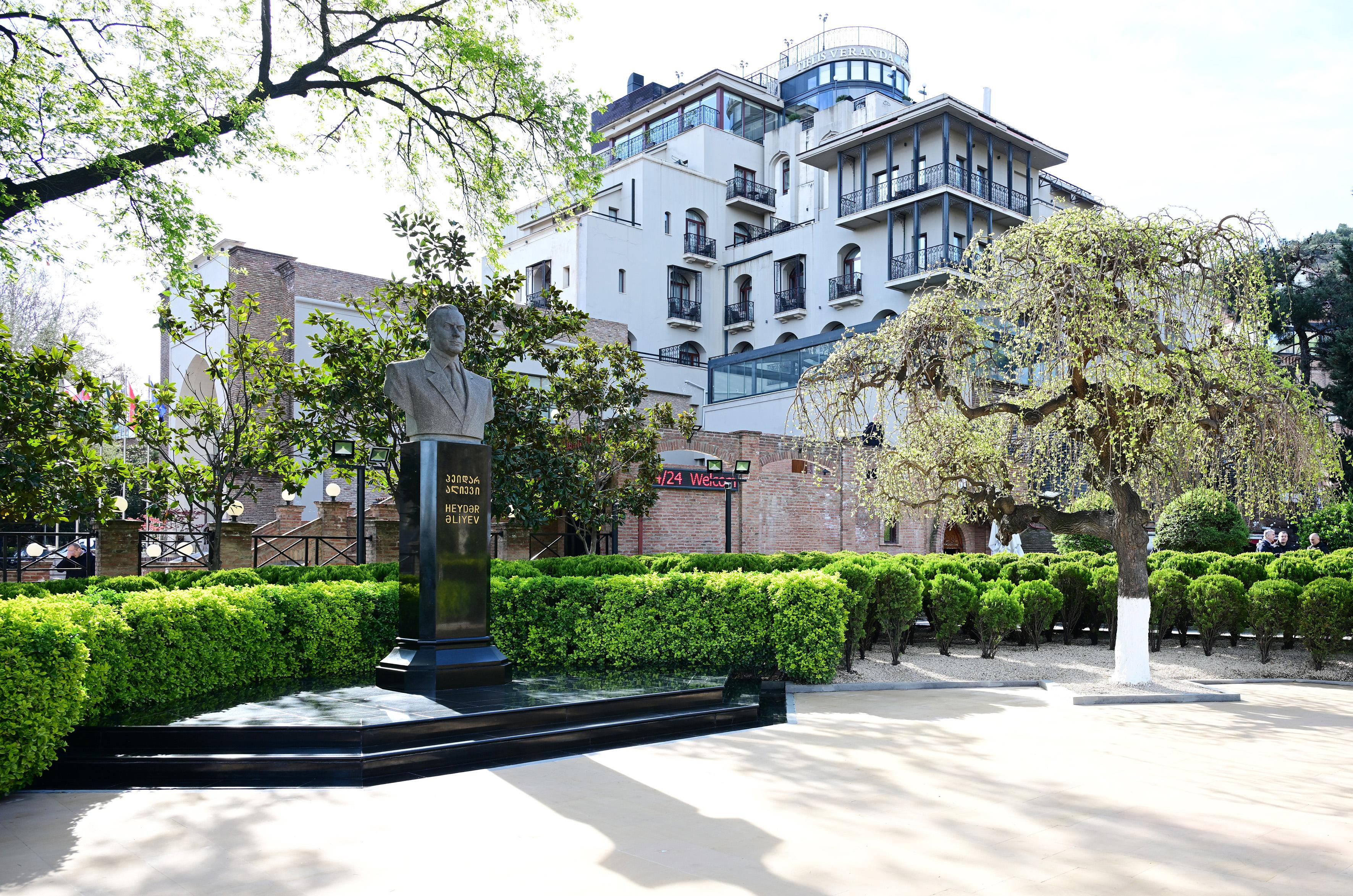 İlham Əliyev və Mehriban Əliyeva Tbilisidə Ümummilli Liderin abidəsini ziyarət ediblər