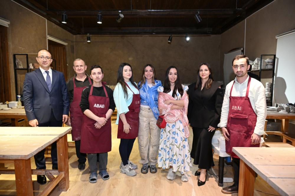 Daha sonra Leyla Əliyeva və Arzu Əliyeva “ABAD”çı rəssam keramistlərin fəaliyyəti ilə yaxından tanış olub, keramika məhsullarının hazırlanması prosesində sənətkarlarla birlikdə iştirak ediblər. Sənətkarlar tərəfindən müxtəlif keramika nümunələrinin hazırlanmasında Leyla Əliyevanın rəsm əsərlərindən ilham alındığı diqqətə çatdırılıb. Leyla Əliyeva əsərlərinə göstərilən diqqətə görə keramistlərə təşəkkür edib, milli sənət ənənələrinin qorunması və inkişafı istiqamətində fəaliyyətlərini yüksək qiymətləndirib, onlara yeni yaradıcılıq uğurları arzulayıb.
