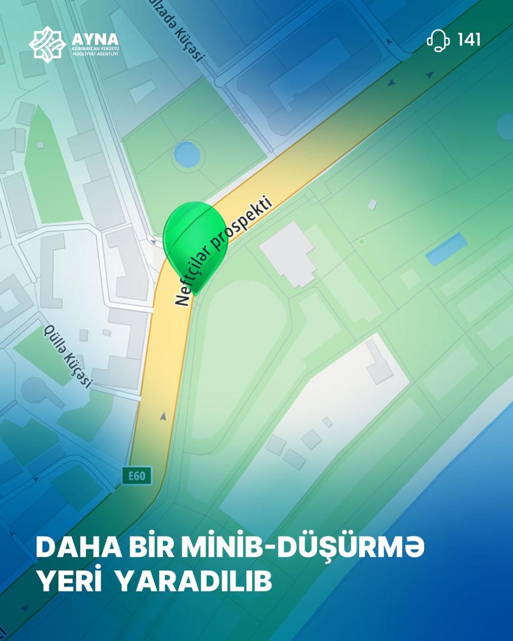 Qeyd edək ki, bundan əvvəl Yusif Səfərov və Rəşid Behbudov küçələrində, həmçinin Rəşid Behbudov və Mikayıl Rəfili, 28 May və Fikrət Əmirov küçələrinin kəsişməsində minib-düşmə yerləri sərnişinlərin ixtiyarına verilib.