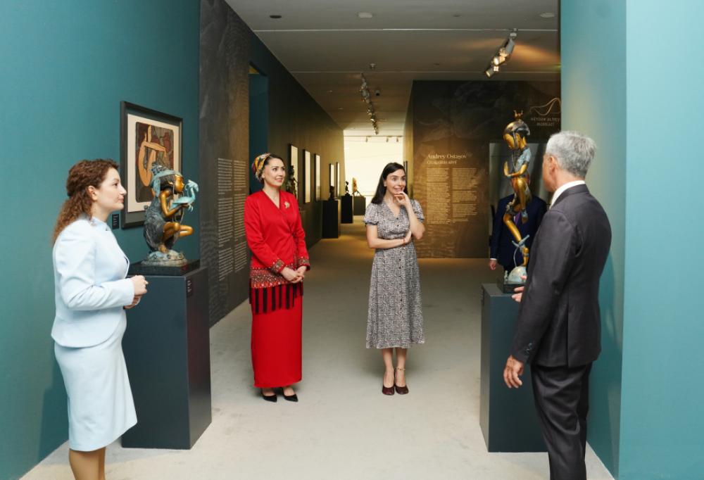 Daha sonra qonaq tanınmış heykəltaraş Andrey Ostaşovun “Qızılgülün sirri”, rəssam və heykəltaraş Luiz de Souzanın "Əbədiyyətin ifadəsi" sərgiləri ilə tanış olub.