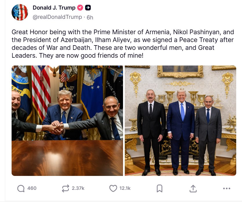Təhlil.az xəbər verir ki, bunu ABŞ Prezidenti Donald Tramp “Truth Social” hesabında yazıb.