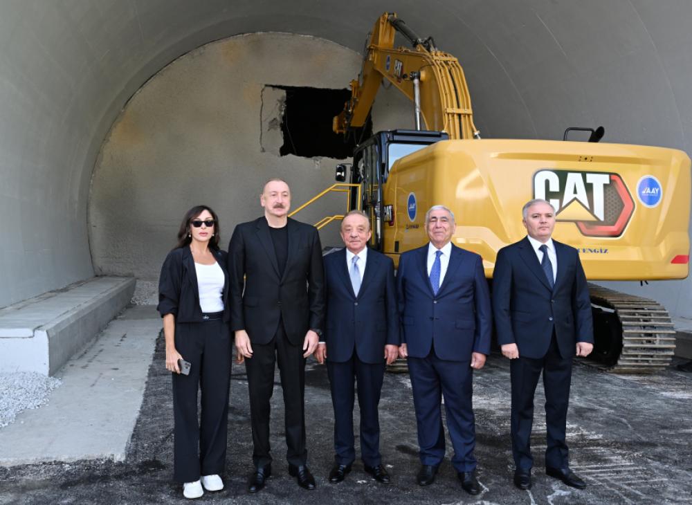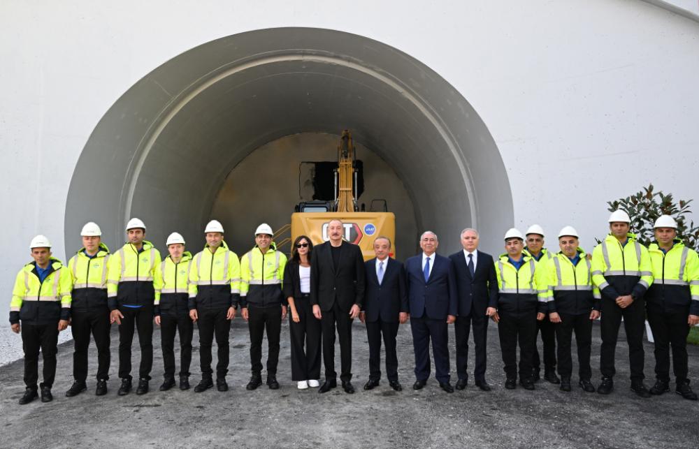 Təhlil.az xəbər verir ki, dövlətimizin başçısı bu yolun 13,5-ci kilometrliyində inşa edilmiş və uzunluğu 11,7 kilometr olan Murovdağ tunelinin texniki açılışını edib.