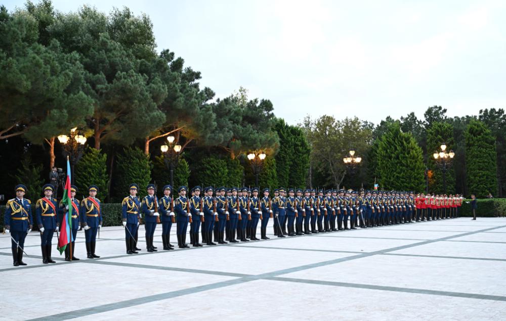 Fəxri qarovul dəstəsi hərbi marşın sədaları altında Azərbaycan Prezidenti İlham Əliyevin və İtaliya Prezidenti Sercio Mattarellanın qarşısından keçdi.