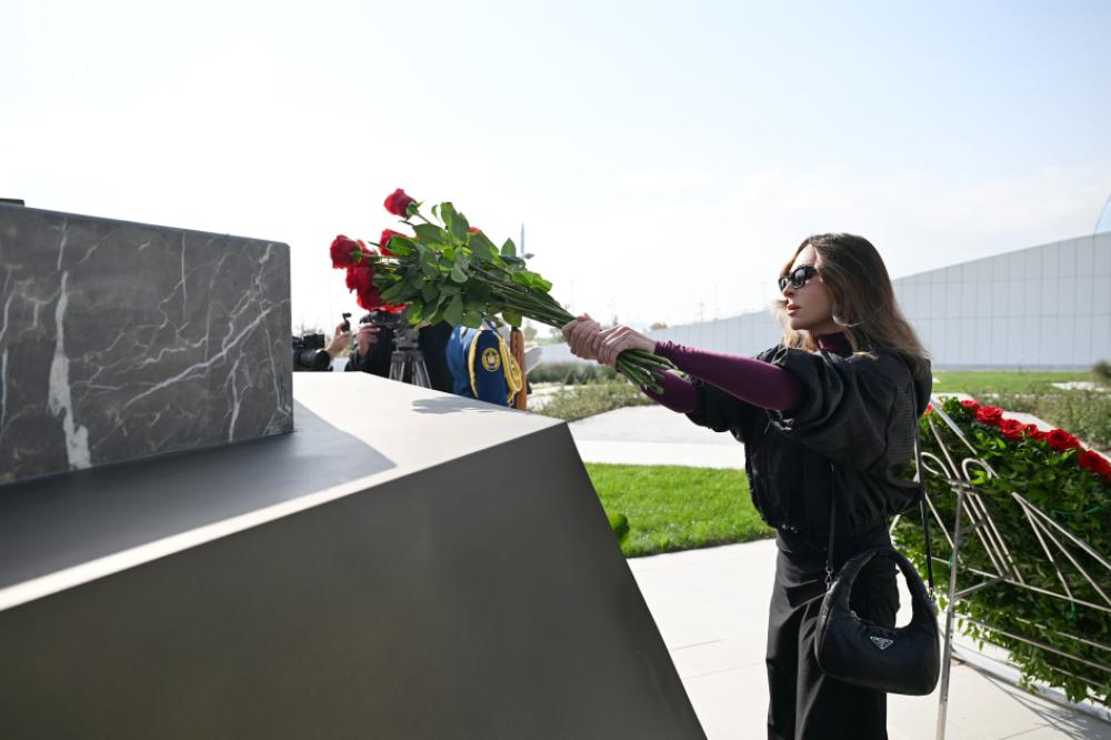 Birinci xanım Mehriban Əliyeva abidənin önünə gül dəstələri düzdü.