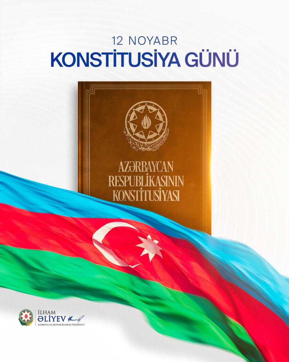 Prezident İlham Əliyev 12 Noyabr - Konstitusiya Günü ilə bağlı sosial şəbəkə hesablarında paylaşım edib.