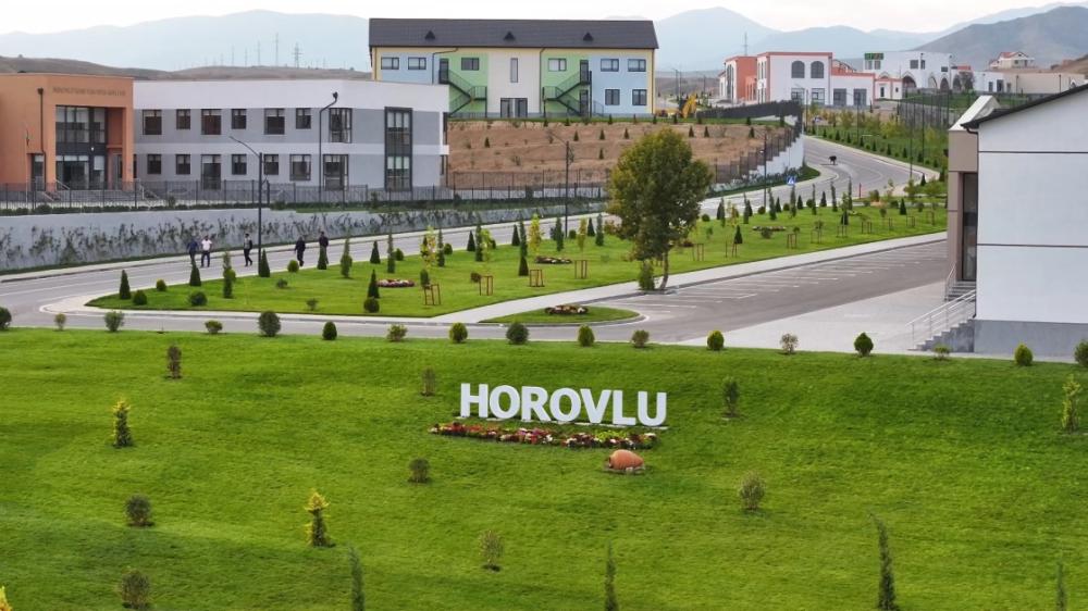 Qeyd edək ki, kəndin ümumi sahəsi 248 hektardır. Birinci mərhələdə 94 hektar ərazidə 334 fərdi ev inşa edilib. Evlər 2, 3, 4, 5 otaqlıdır və müasir kommunikasiya şəbəkəsi –su, işıq, qaz, Günəş panelləri, yüksəksürətli internetlə təmin olunub. Kənddaxili yollara asfalt döşənib. 624 şagird yerlik məktəb binasının, 220 yerlik körpələr evi-uşaq bağçasının, ikimərtəbəli inzibati binanın, bazar kompleksinin, çoxfunksiyalı iaşə obyektlərinin, tibb məntəqəsinin və idman-sağlamlıq mərkəzinin tikintisi həyata keçirilib. Kənddə tarixən istifadə olunmuş, işğal dövründə dağıdılmış “Əsgər”, “Şığı”, “Orta”, “Gülqasım” və “Xəlifə” kəhrizləri bərpa edilib. Horovlu kəndində 4,4 hektar ərazidə park kompleksi də inşa olunub. Eyni zamanda, Bayraq meydanından bazar kompleksinə qədər gəzinti yolları salınıb. 3,1 hektar yaşıllıq ərazisində zeytun, çinar və Eldar şamı ağacları əkilib.