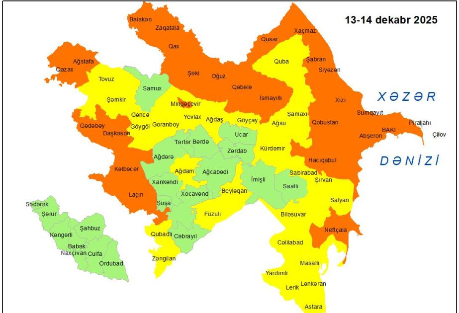 Milli Hidrometeorologiya Xidməti dekabrın 13-ü axşamdan 14-ü gündüzədək Bakıda və Abşeron yarımadasında, 13-ü gündüzdən 14-ü gündüzədək isə əksər bölgələrdə gözlənilən küləkli hava şəraiti ilə bağlı sarı və narıncı xəbərdarlıq verib.