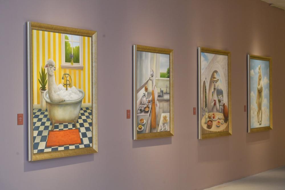 Təhlil.az xəbər verir ki, sərgidəki əsərlərin əsas qəhrəmanları And yaylasının rəmzinə çevrilmiş alpakalardır.