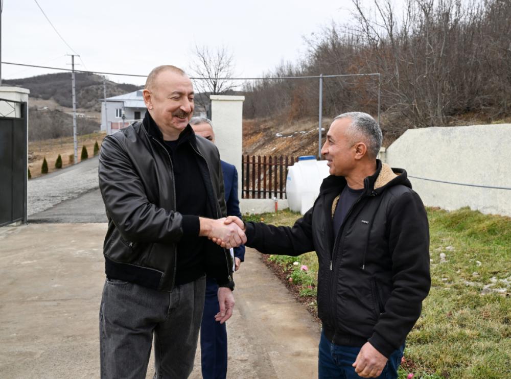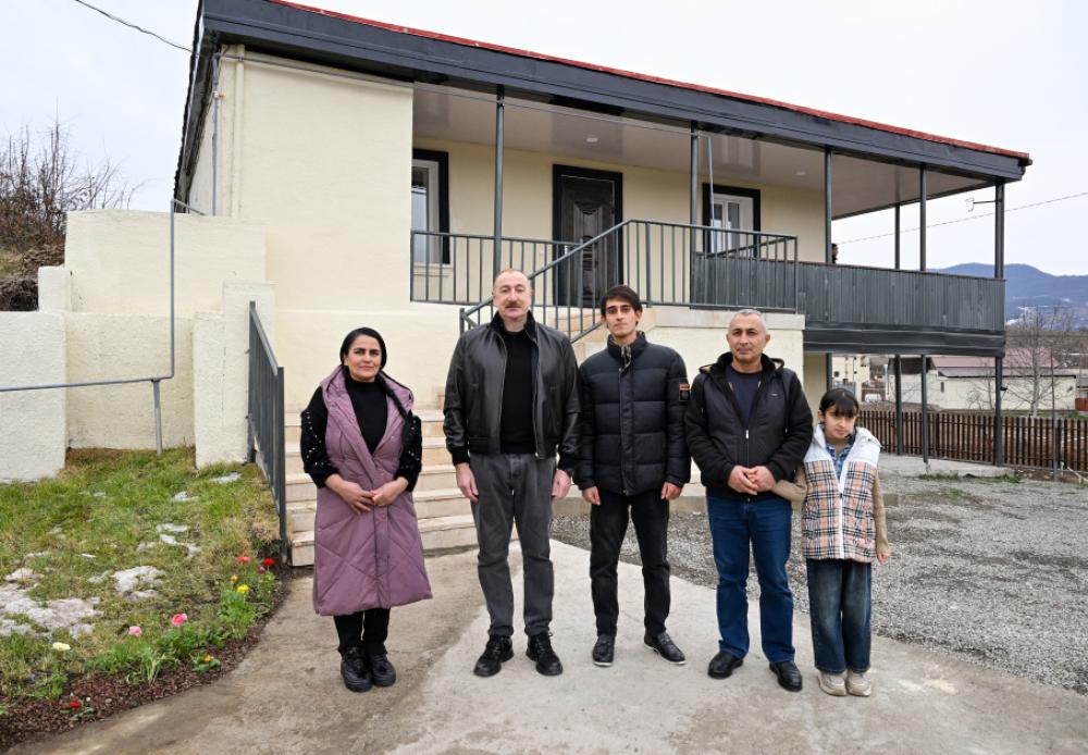 Sonra Prezident İlham Əliyev kənd sakini Sarvan Abbasovun ailəsinə baş çəkdi, yeni evdə yaradılmış şəraitlə tanış oldu.