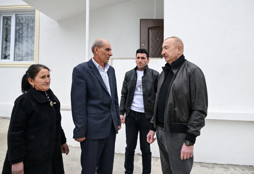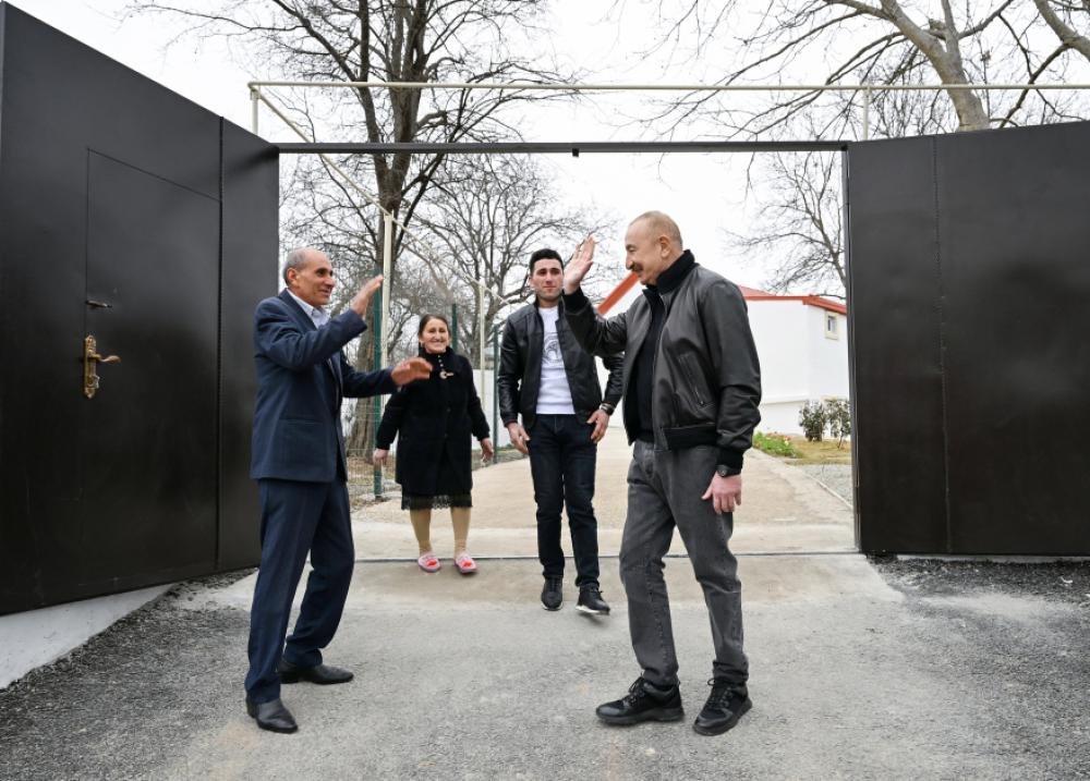 Sonra Prezident İlham Əliyev kəndə köçmüş Verdi Abdullayevin ailəsinə baş çəkdi.