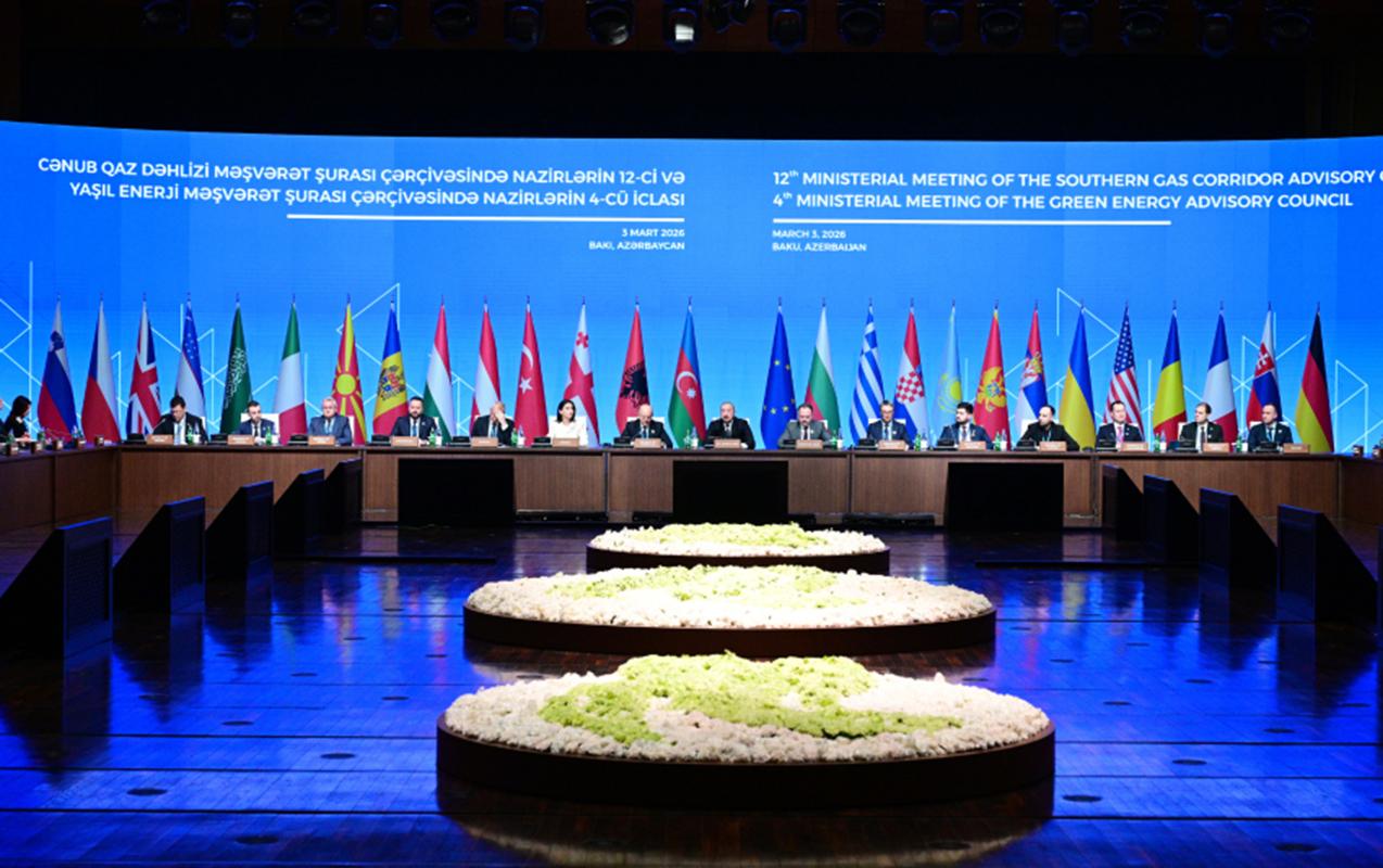 Bakı Konqres Mərkəzində Cənub Qaz Dəhlizi Məşvərət Şurası çərçivəsində nazirlərin 12-ci və Yaşıl Enerji Məşvərət Şurası çərçivəsində nazirlərin 4-cü iclasları keçirilir.