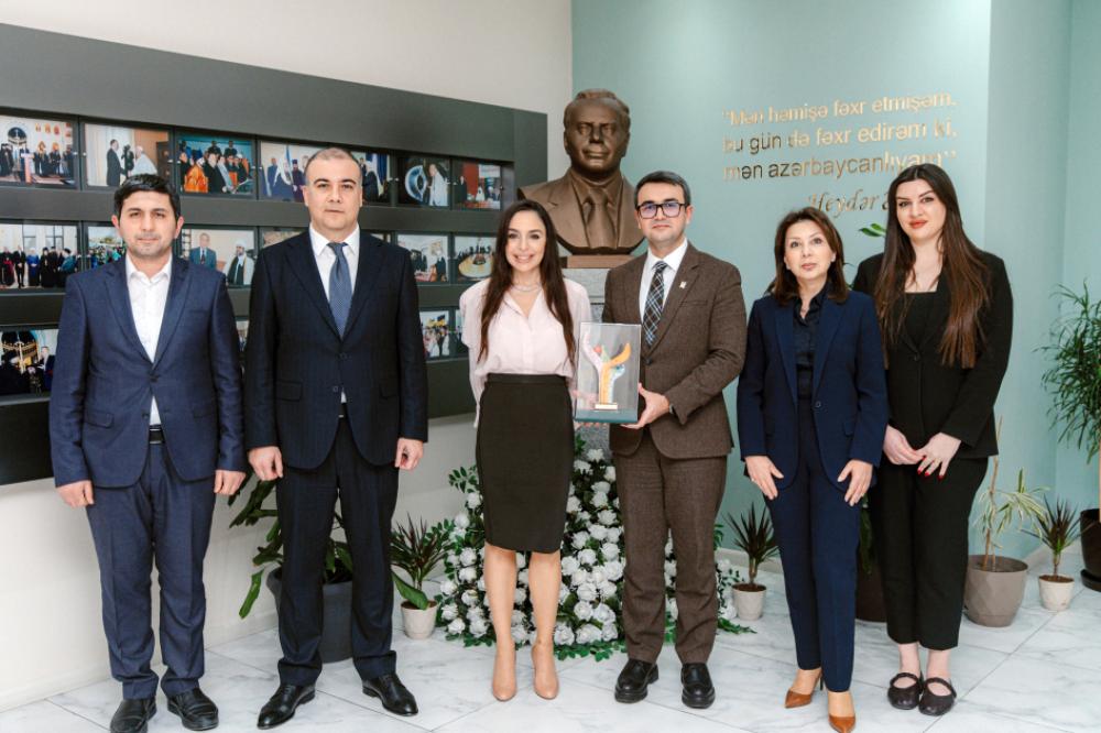 Leyla Əliyeva Mərkəzin kollektivi ilə həmsöhbət olub, onlarla şəkil çəkdirib.