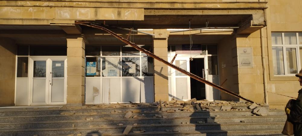 Aprelin 2-də axşam saatlarında Qazax rayonu Daş Salahlı kəndi Şahin Cəbiyev adına 2 nömrəli tam orta ümumtəhsil məktəbinin binasının giriş hissəsində bir neçə aqlay daşı güclü küləyin təsiri nəticəsində aşınaraq qopub.