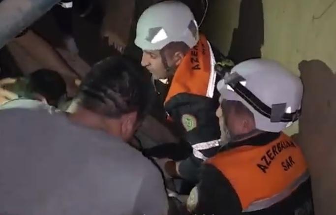 Xilasedicilər xüsusi vasitələrin köməyi ilə dağıntı altında qalan vətəndaşı xilas edərək təcili tibbi yardım briqadasına təhvil veriblər.