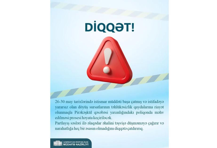 İstismar müddəti bitmiş və istifadəyə yararsız döyüş sursatları məhv ediləcək