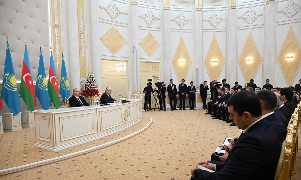 Azərbaycan və Qazaxıstan prezidentləri mətbuata bəyanatlarla çıxış ediblər