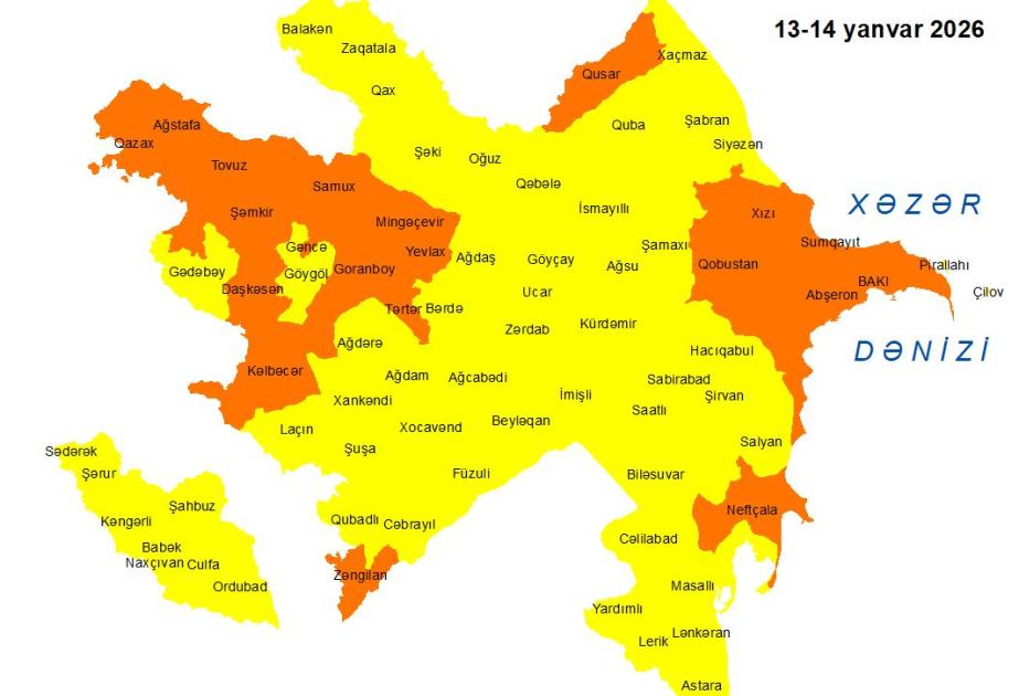 Azərbaycanda yanvarın 13-nə gözlənilən hava proqnozu