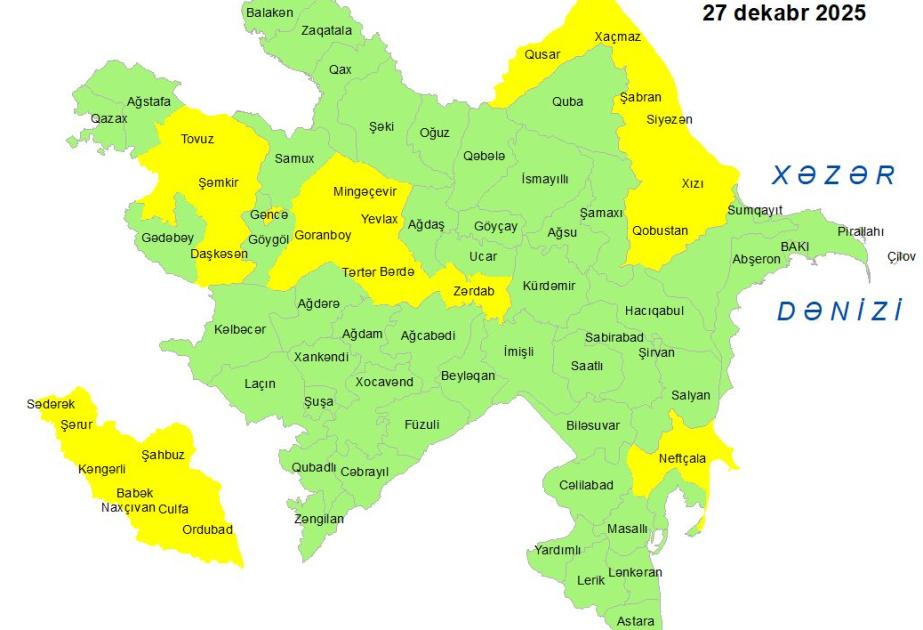 Küləkli hava şəraiti ilə bağlı sarı xəbərdarlıq verilib