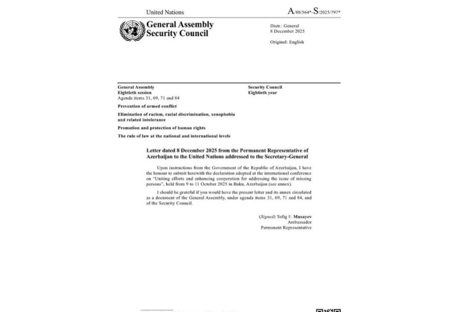 Bakı Bəyannaməsi BMT-nin rəsmi sənədi kimi dərc olunub