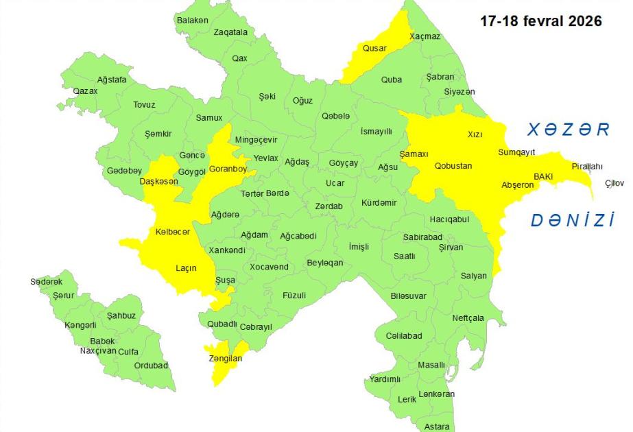 Küləkli hava şəraiti ilə bağlı sarı xəbərdarlıq verilib