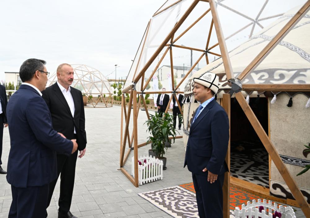 Əvvəlcə prezidentlər məktəbin həyətində quraşdırılan yurtaya baxdılar. Səyyar yaşayış yeri kimi asanlıqla qurulub-sökülən yurta köçəri həyat tərzi üçün nəzərdə tutulur. Hazırda Mərkəzi Asiyada turizm istiqaməti kimi bir çox türk xalqları yurta turizmini inkişaf etdirirlər.