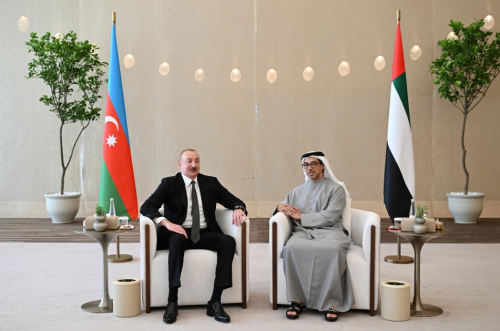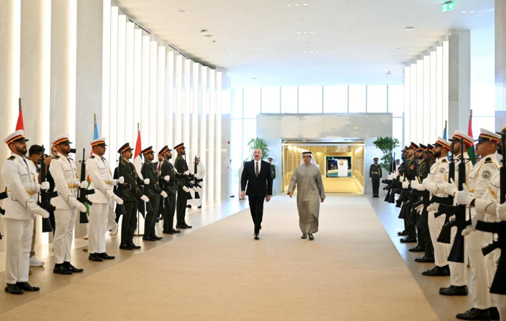 Prezident İlham Əliyevi Birləşmiş Ərəb Əmirliklərinin vitse-prezidenti, Baş nazirin müavini, Prezident Divanının rəhbəri Şeyx Mansur bin Zayed Əl Nəhyan və digər rəsmi şəxslər qarşıladılar.