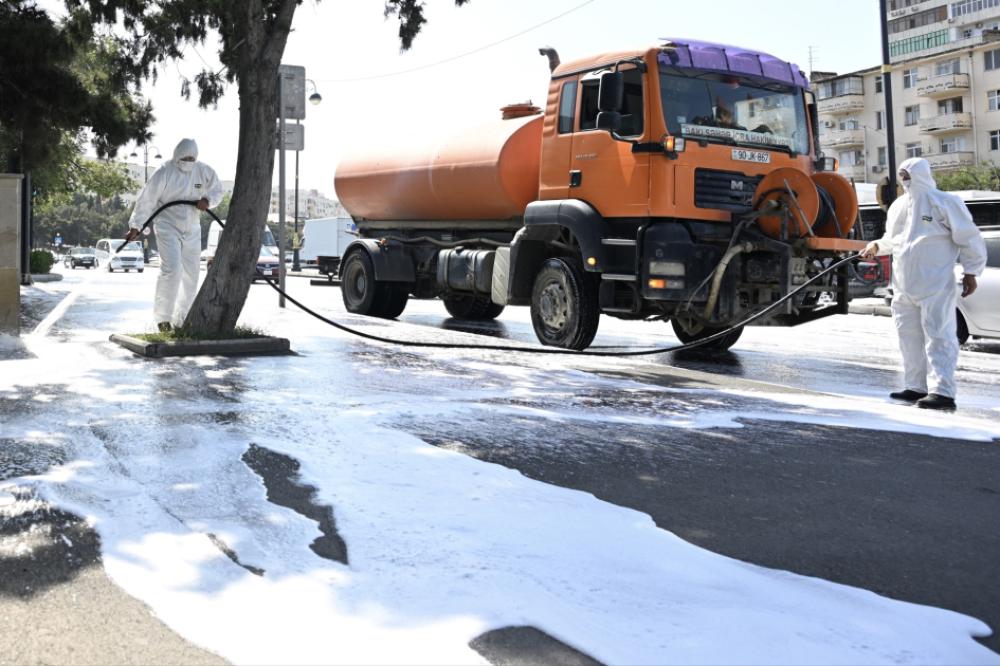 Təhlil.az Bakı Şəhər İcra Hakimiyyətinin (BŞİH) mətbuat xidmətinin məlumatına istinadla xəbər verir ki, BŞİH-in Kommunal təsərrüfat xidmətlərinin texnikası səhər saatlarından başlayaraq əsas küçə və prospektlərin bitki və canlılara ziyansız yuyucu maddələrlə yuyulmasını aparıb. Təmizlik işləri zamanı həm də məhəllədaxili və ara yollar da yuyulub. Xidmətin əməkdaşları tərəfindən prospekt və küçələrin, səki kənarlarının, bordyurların və buradakı işıq dirəklərinin, yol kənarındakı məhəccərlərin, park və istirahət yerlərində oturacaqların yuyulmasını həyata keçirilib, həyət və yaşayış məhəllələrində təmizlik işləri görülüb. İctimai-iaşə, ticarət və digər obyektlərin vitrinləri təmizlənib, ətrafında səliqə-sahman yaradılıb.