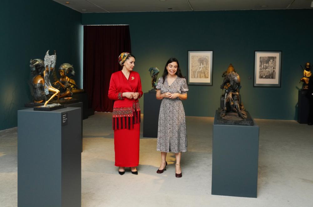 Daha sonra qonaq tanınmış heykəltaraş Andrey Ostaşovun “Qızılgülün sirri”, rəssam və heykəltaraş Luiz de Souzanın "Əbədiyyətin ifadəsi" sərgiləri ilə tanış olub.