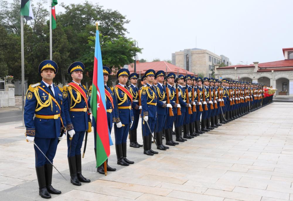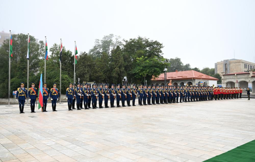 Fəxri qarovul dəstəsi hərbi marşın sədaları altında Azərbaycan Prezidenti İlham Əliyevin və Birləşmiş Ərəb Əmirliklərinin Prezidenti Şeyx Məhəmməd bin Zayed Al Nəhyanın qarşısından keçdi.