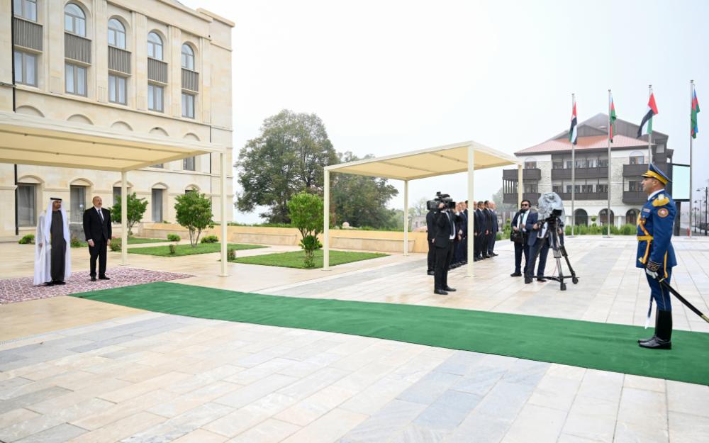 Azərbaycan Respublikasının Prezidenti İlham Əliyev və Birləşmiş Ərəb Əmirliklərinin Prezidenti Şeyx Məhəmməd bin Zayed Al Nəhyan fəxri qarovul dəstəsinin qarşısından keçdilər.
