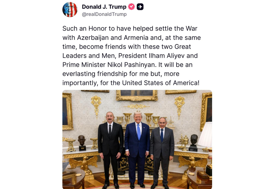 ABŞ Prezidenti Donald Tramp “Truth” sosial şəbəkəsində Azərbaycanla bağlı növbəti paylaşım edib.