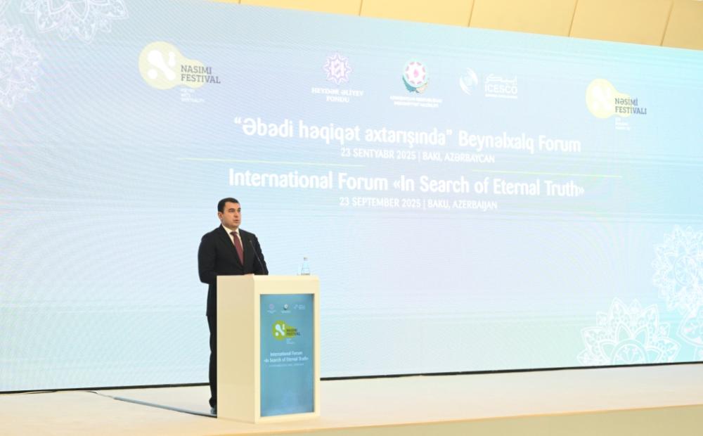 Təhlil.az xəbər verir ki, Heydər Əliyev Fondu və Mədəniyyət Nazirliyinin təşkilatçılığı, ICESCO-nun tərəfdaşlığı ilə keçirilən festival “Əbədi həqiqət axtarışında” mövzusunda beynəlxalq forumla işinə başlayıb.