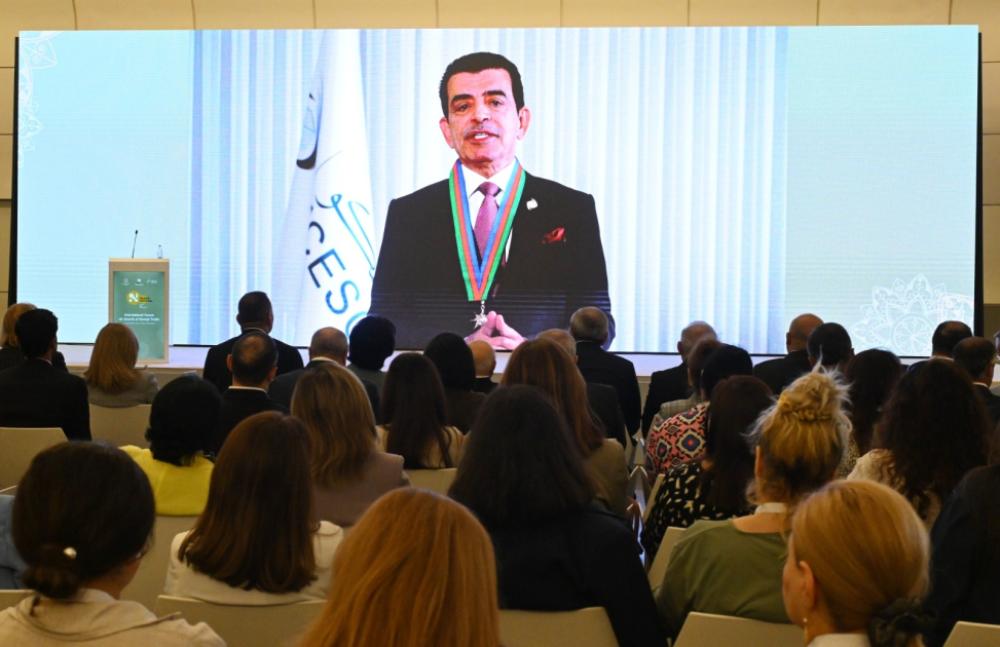 Forumun açılışında ICESCO-nun Baş direktoru Salim bin Məhəmməd əl-Malikin videomüraciəti təqdim edilib. O bildirib ki, Nəsimi irsi insanlığın mədəni və mənəvi inkişafında əvəzsiz rol oynayır. ICESCO-nun Baş direktoru qeyd edib ki, bu irsi yad etməklə cəsarət, sorğu və gözəllik ənənəsi canlanır, insanlığın yolu işıqlandırılır. Həmçinin o, Nəsimi irsinin qəlbləri və ağlı işığa, birliyə, sülhə və rifaha yönəltdiyini xüsusilə vurğulayıb.