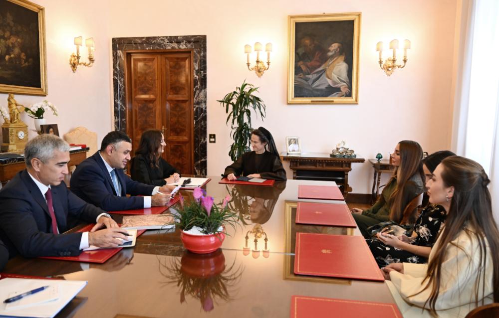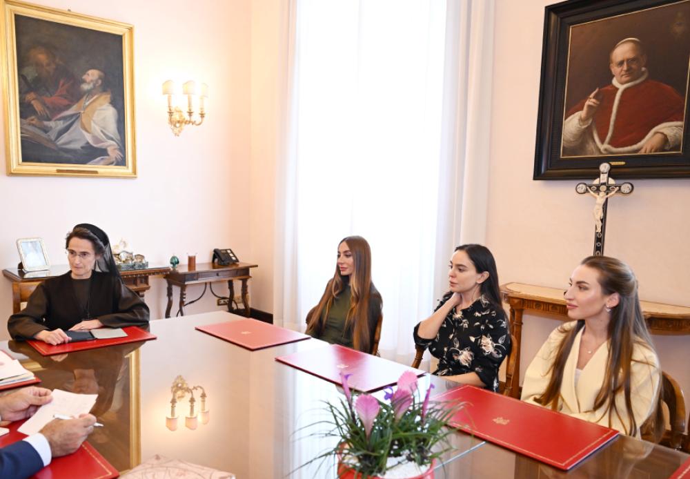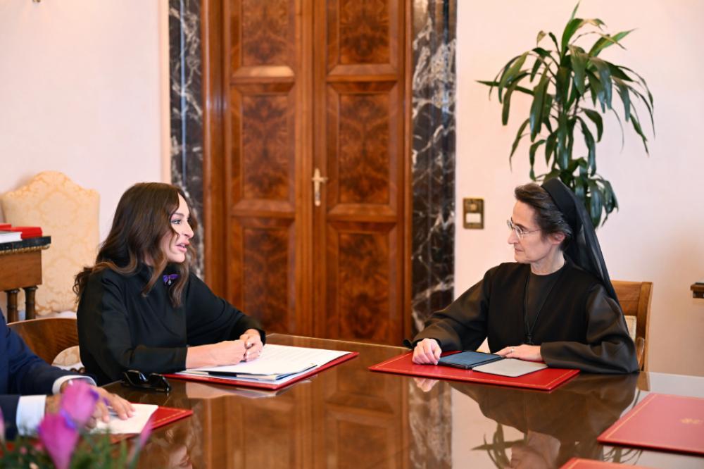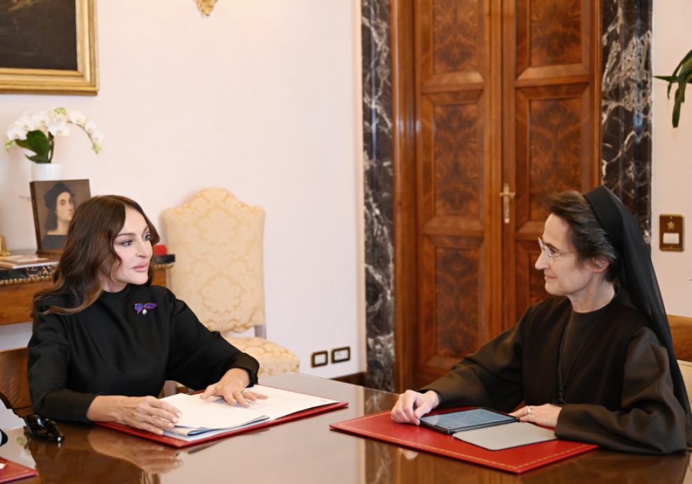 Oktyabrın 17-də Azərbaycan Respublikasının Birinci vitse-prezidenti Mehriban Əliyeva Vatikan şəhər-dövlətinin qubernatorluğunun prezidenti, rahibə Raffaella Petrini ilə görüşüb.