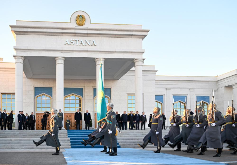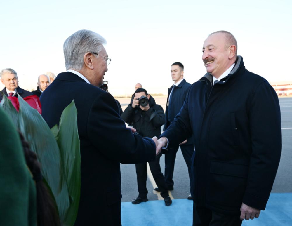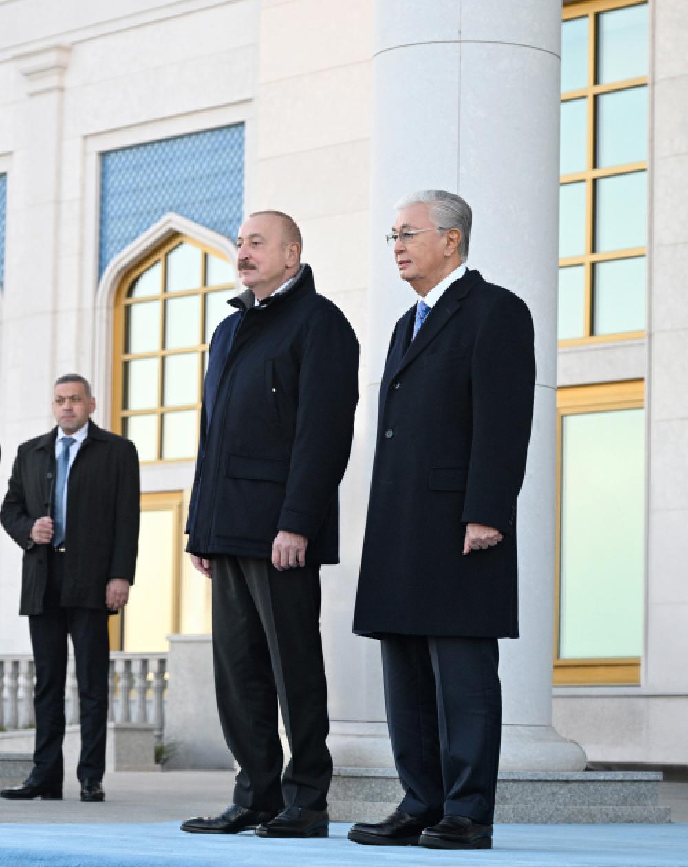 Dövlətimizin başçısını Qazaxıstan Respublikasının Prezidenti Kasım-Jomart Tokayev qarşıladı.