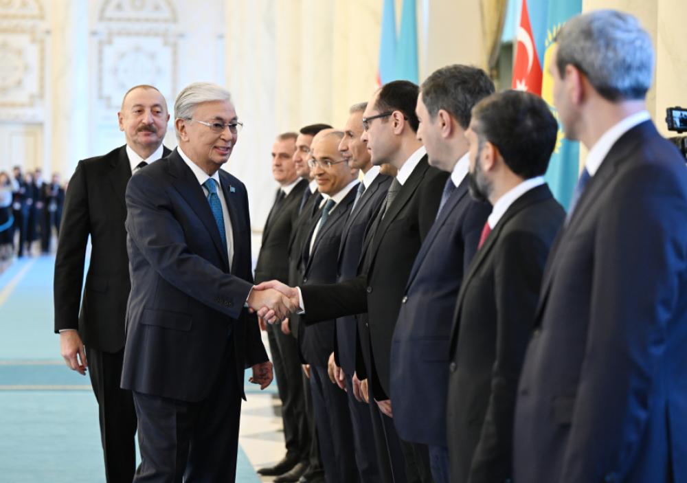 Qazaxıstanın nümayəndə heyətinin üzvləri Prezident İlham Əliyevə, Azərbaycan nümayəndə heyətinin üzvləri isə Prezident Kasım-Jomart Tokayevə təqdim edildi.
