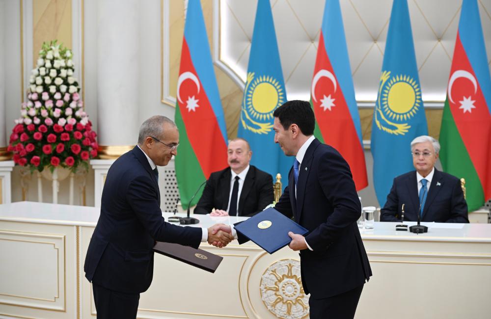 “Azərbaycan Respublikası Hökuməti ilə Qazaxıstan Respublikası Hökuməti arasında energetika sahəsində strateji tərəfdaşlıq haqqında Saziş”i Azərbaycanın energetika naziri Pərviz Şahbazov və Qazaxıstanın energetika naziri Yerlan Akkenjenov mübadilə etdilər.