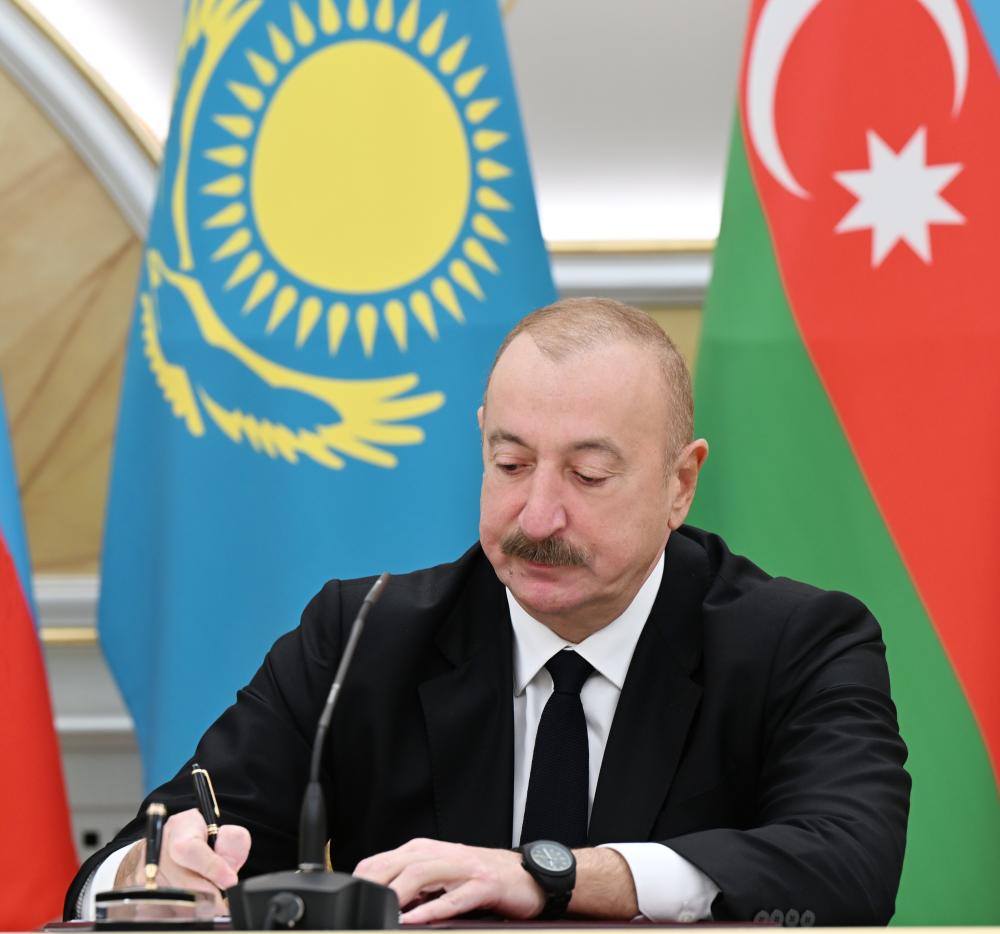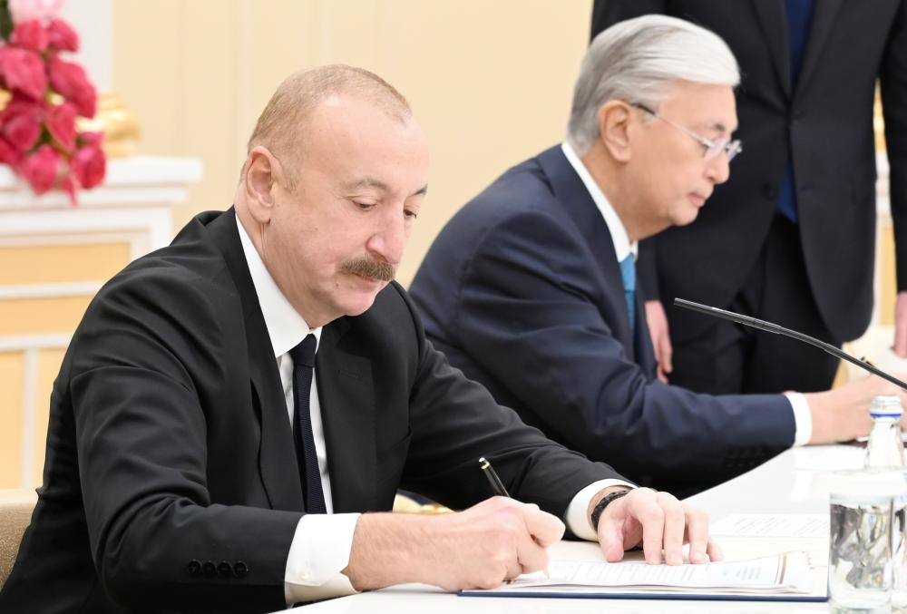 Sonra Azərbaycan-Qazaxıstan sənədləri mübadilə olundu.