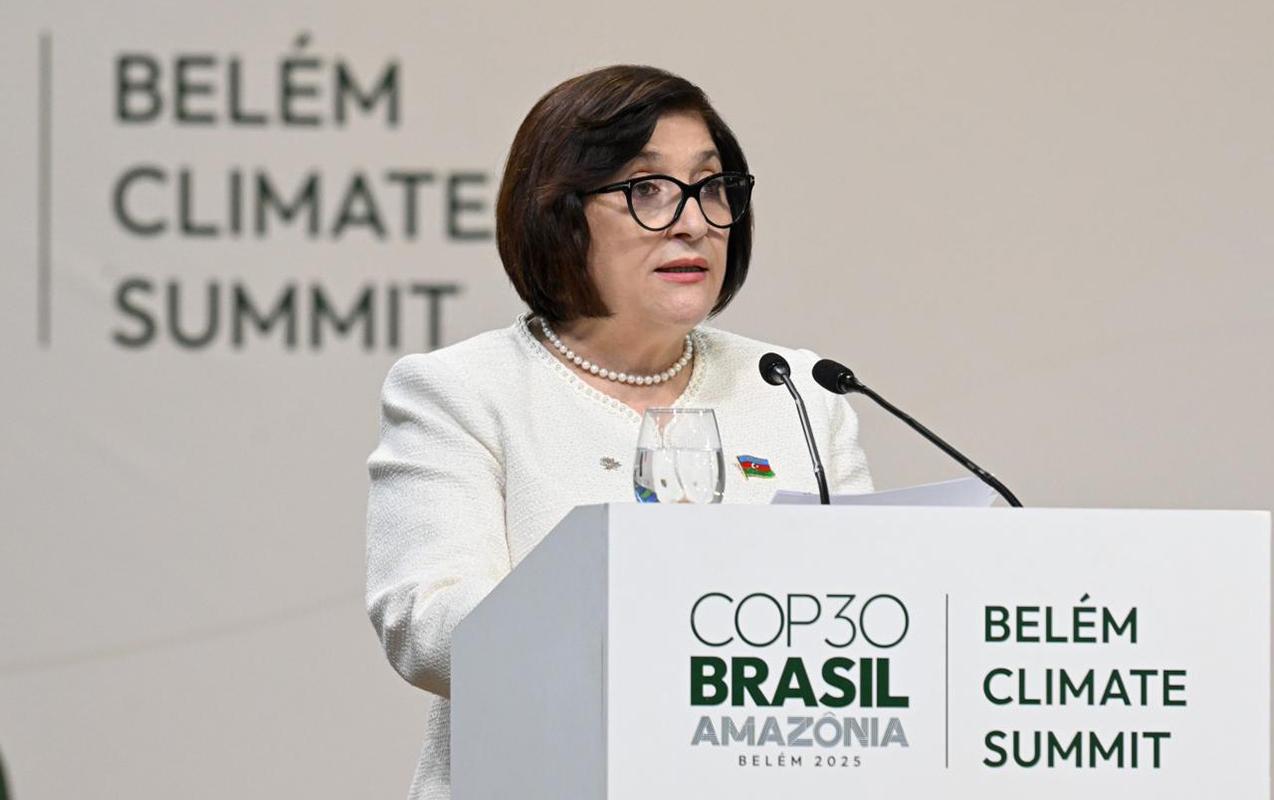 Milli Məclisin sədri Sahibə Qafarova Braziliyanın Belem şəhərində keçirilən BMT-nin İqlim Dəyişmələri üzrə Çərçivə Konvensiyasının Tərəflər Konfransının 30-cu sessiyasının (COP30) Liderlər Sammitində çıxış edib.