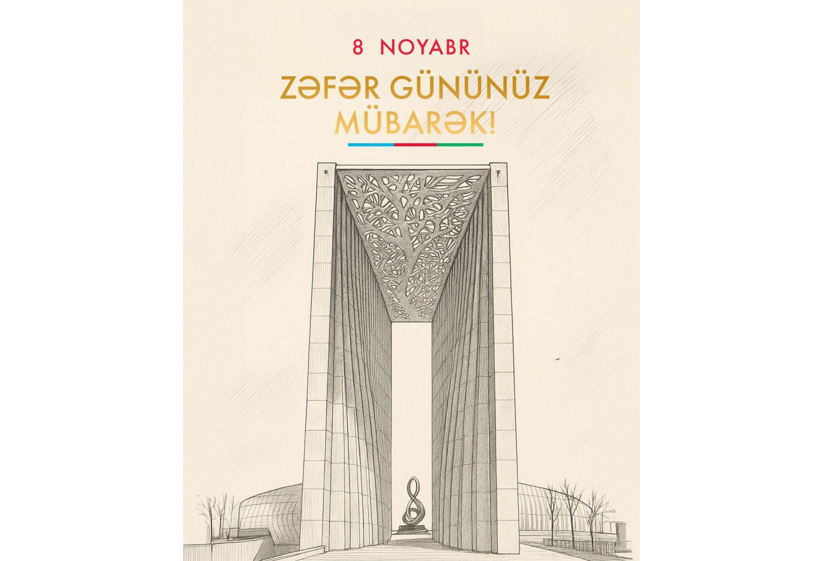 Vətən müharibəsində əldə edilən şanlı Zəfərin beşinci ildönümü münasibətilə hər birinizi səmimi-qəlbdən təbrik edirəm! Bugünkü bayramı qəhrəman xalq kimi başımız uca qeyd etdiyimizə görə bizim Prezidentimizə, cəsarətli əsgər və zabitlərimizə təşəkkür edirəm!