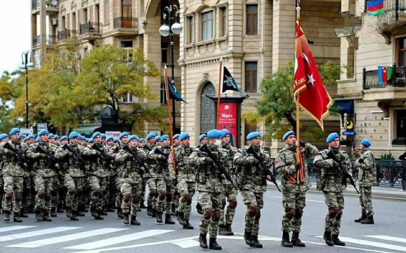 Bakıda Vətən müharibəsində Qələbənin beşinci ildönümü münasibətilə keçirilən hərbi paradda Türkiyə hərbçiləri tribuna önündən keçid ediblər.