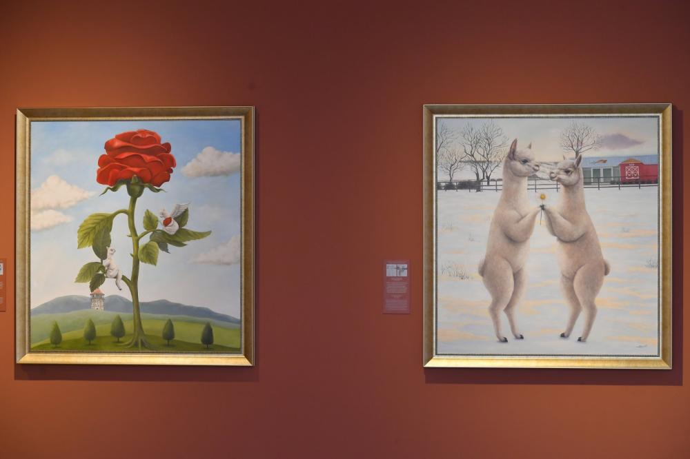 Təhlil.az xəbər verir ki, sərgidəki əsərlərin əsas qəhrəmanları And yaylasının rəmzinə çevrilmiş alpakalardır.