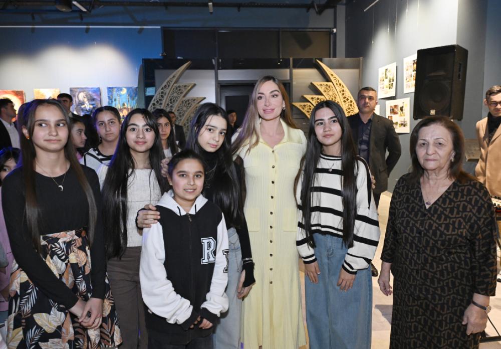 Arzu Əliyeva və Alena Əliyeva mərkəzin fəaliyyəti ilə yaxından tanış olub, sərgilənən əl işlərinə baxış keçirib, qonaqlar və sərgi iştirakçıları ilə şəkil çəkdiriblər.