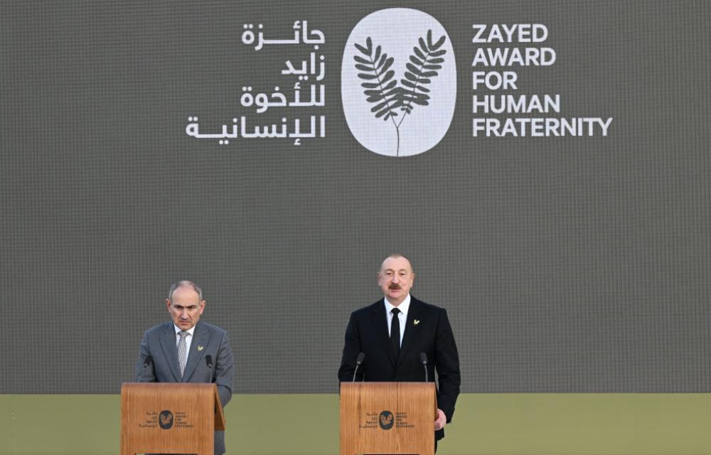 Əbu-Dabidə keçirilən bu mükafat mərasimi ilə bağlı qeyd edəcəyim son məqam odur ki, bu mərasim rəmzi məna daşıyır. Çünki Ermənistan ilə Azərbaycan arasında sonuncu danışıqlar raundu ötən ilin iyul ayında, tarixi Vaşinqton Sammitindən cəmi bir ay əvvəl məhz burada baş tutmuşdur. Əziz qardaşımız Şeyx Məhəmmədin dəstəyi ilə sülhün bərqərar olunması üçün son razılığa burada gəldik və həmin razılıq daha sonra Vaşinqtonda rəsmiləşdirilmişdir.