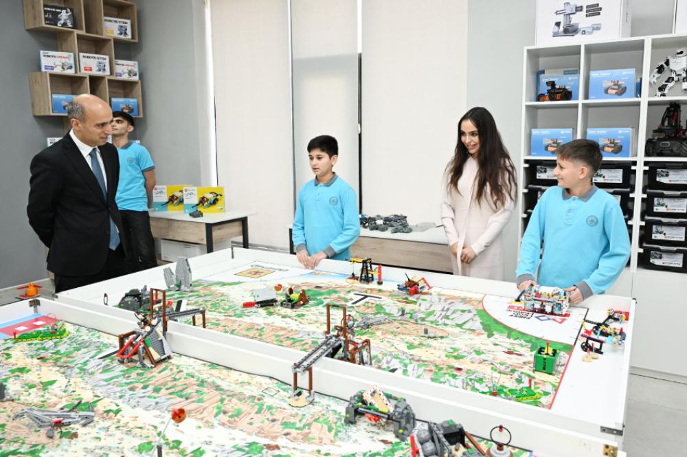 Heydər Əliyev Fondunun vitse-prezidenti Leyla Əliyeva və Alena Əliyeva Gəncə şəhər Fizika, riyaziyyat və informatika təmayüllü liseydə fəaliyyət göstərən STEAM mərkəzində və Gəncə şəhər 37 nömrəli tam orta məktəbdə olublar.